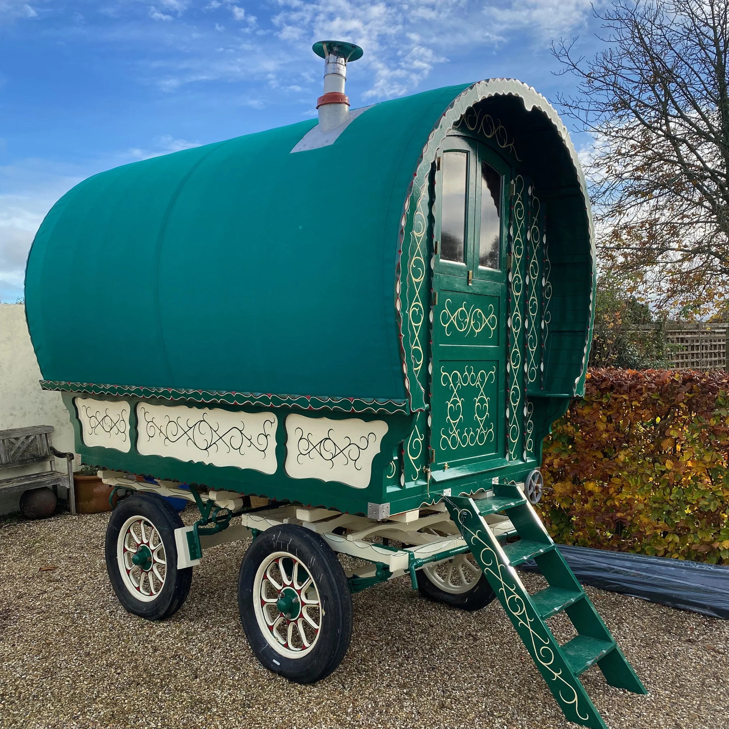 Rebuild of a Bowtop wagon. We rebuilt and repainted this bowtop wagon from the carriage up. External elements in Accoya. Interior cabinetry in Ash with limed panels. 2021